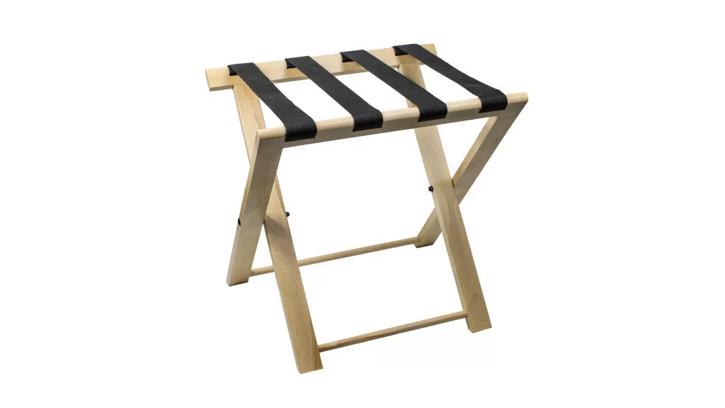 Mithilfe der Kofferablage muss Ihr Gast den Reisekoffer nicht auf dem Bett oder im Sessel abstellen, sondern Sie können ihn bequem aus- und einpacken, ohne dass der Reisestaub und -schmutz auf dem Bettzeug oder im Sessel landet. Leicht zu verstauen, robust, mit austauschbaren Gurten und in mehreren Farben erhältlich, angepasst an das Erscheinungsbild des Raumes.