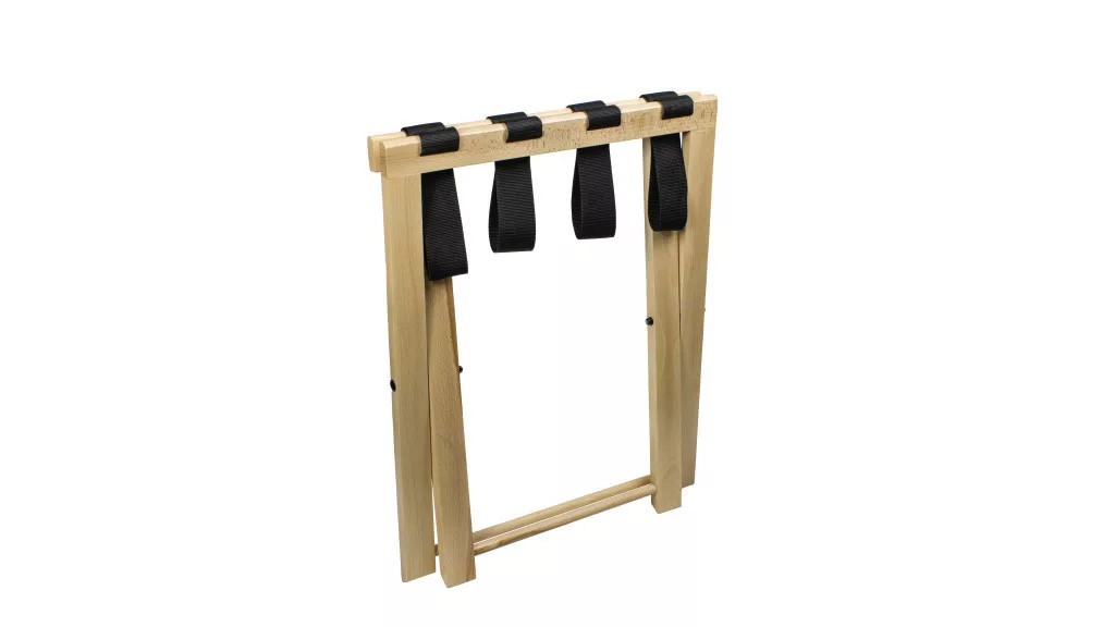 Der DELTA Hotel-Gepäckständer ist eine praktische Lösung für komfortables Packen. Dank des Ständers müssen Gäste ihre Koffer nicht mehr auf dem Bett oder Sessel abstellen und schützen so Bettwäsche und Möbel vor Staub und Schmutz. Der Ständer ist aus hochwertigem, massivem Bambus gefertigt und daher nicht nur langlebig, sondern auch umweltfreundlich. Er lässt sich leicht verstauen und verfügt über stabile, austauschbare Gurte in verschiedenen Farben, sodass Sie ihn optimal an die Zimmergestaltung anpassen können. Die Maße des Ständers sind ideal für Hotelzimmer: Breite 57,5 ​​cm, Länge 39 cm, Höhe 46,5 cm und zusammengeklappt nur 5,5 cm breit. Zudem bietet der Ständer eine zweijährige Garantie und ist somit ein zuverlässiger Begleiter für Hotels über viele Jahre. Auch das Umweltbewusstsein des Herstellers ist lobenswert: Für jedes verkaufte Produkt wird ein Baum gepflanzt, was einen Beitrag zur Nachhaltigkeit leistet.