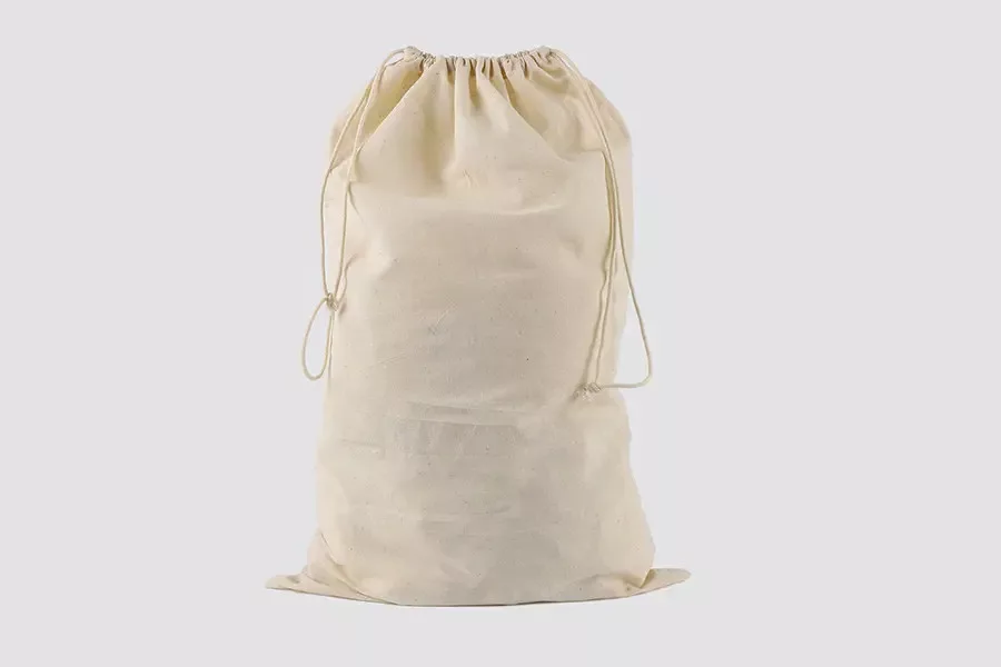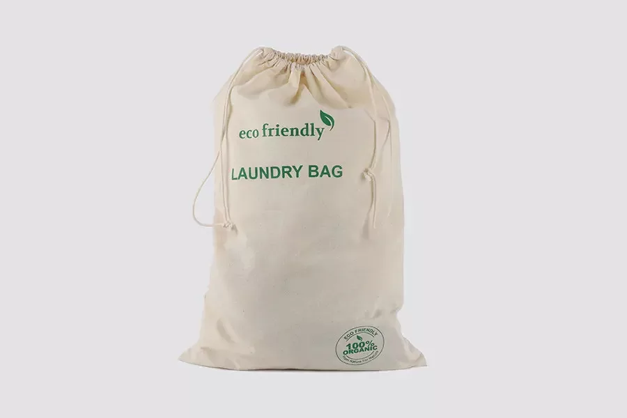 A tiszta pamutból készült, húzózsinóros mosózsák környezetbarát alternatívája a hagyományos PVC mosózsákoknak. A mosózsák mosható és újrafelhasználható. „Környezetbarát mosózsák” felirattal van ellátva.