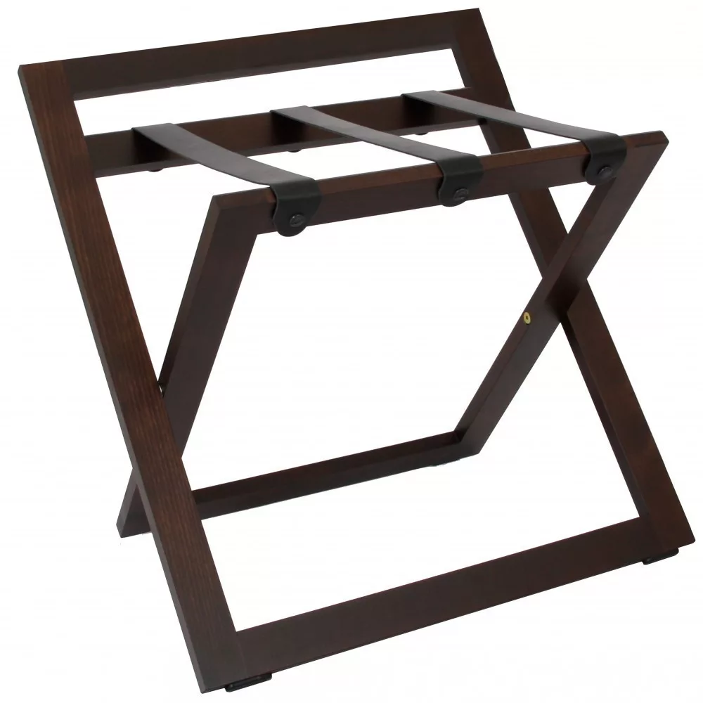 Der Gepäckständer (mit Rückenlehne) ist eine praktische Lösung, die Gästen das Ein- und Auspacken auf Reisen erleichtert. Er verhindert, dass Koffer auf Bett oder Sessel fallen und sorgt so für ein sauberes und ordentliches Zimmer. Der Gepäckständer ist aus hochwertigem Massivholz gefertigt und daher besonders langlebig und stabil. Vier robuste, austauschbare Gurte aus Stoff oder Leder ermöglichen es Ihnen, ihn farblich an Ihr Zimmer anzupassen. Zusammengeklappt ist er nur 5,5 cm dick und lässt sich daher platzsparend verstauen. Mit seinen Maßen von 57,5 ​​cm Breite, 45 cm Länge und 56 cm Höhe passt er perfekt in die meisten Schränke. Bodenschoner verhindern Kratzer auf dem Boden. Der Hersteller gewährt zwei Jahre Garantie und engagiert sich für den Umweltschutz: Für jeden verkauften Gepäckständer wird ein Baum gepflanzt. Mit diesem Produkt genießen Ihre Gäste mehr Komfort und leisten gleichzeitig einen Beitrag zum Umweltschutz.