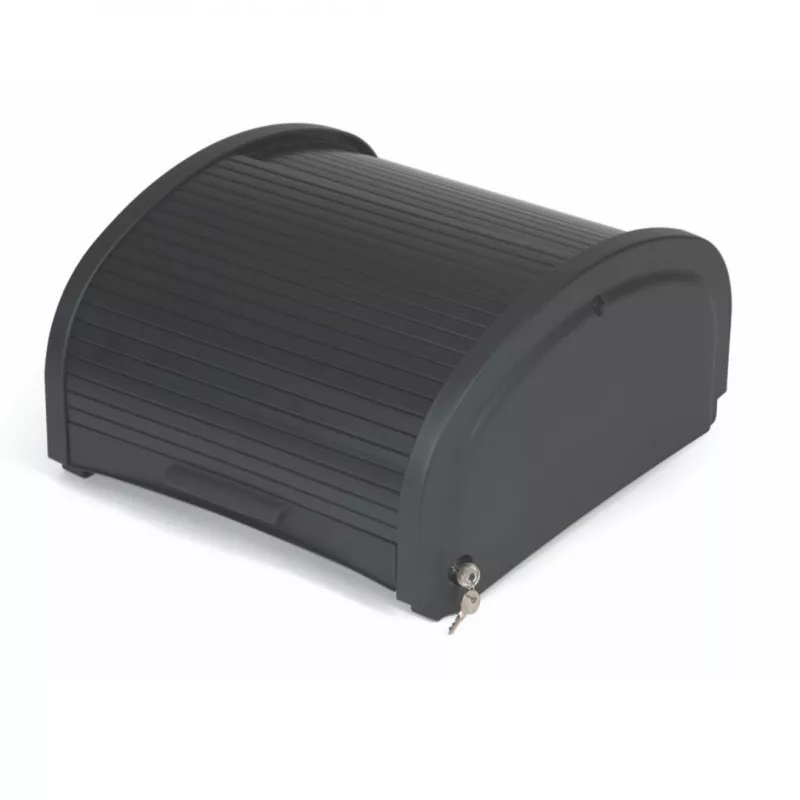 Rubbermaid Reinigungswagenzubehör - abschließbares Dach Mit seiner Hilfe können Reinigungswagen mit einem diebstahlsicheren Sicherheitsdach ausgestattet werden, das mit einem Schlüssel abgeschlossen werden kann. Farbe: schwarz Größe: 24,1 x 43,2 x 48,3 cm Kompatible Reinigungswagen: FG9T7200BLA, FG9T7400BLA, FG9T7500BLA