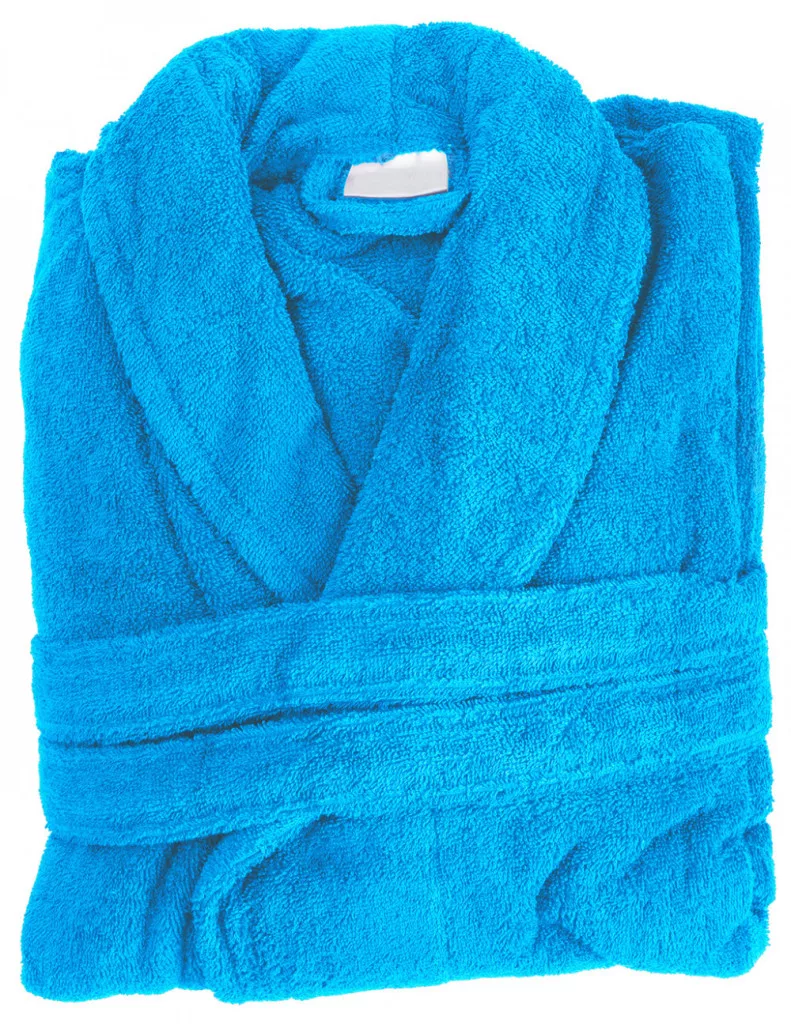 3) Frage: Welche Farbe hat der Bademantel? Antwort: Der Bademantel ist in Türkis erhältlich und wirkt erfrischend.