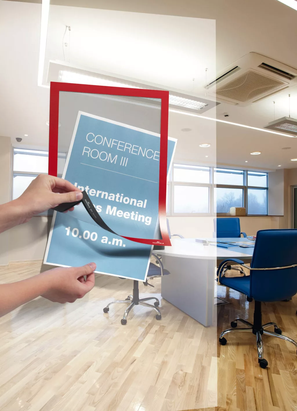 Duruframe mágneses info keret öntapadó hátlappal, A4, piros