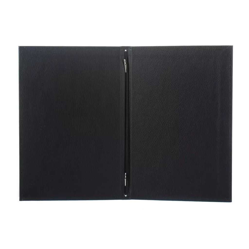 Fekete bőrhatású gumis étlaptartó, A5 méretű, logónyomással