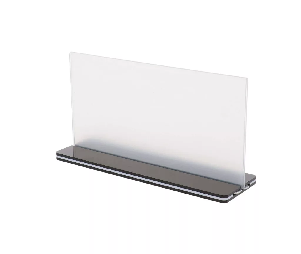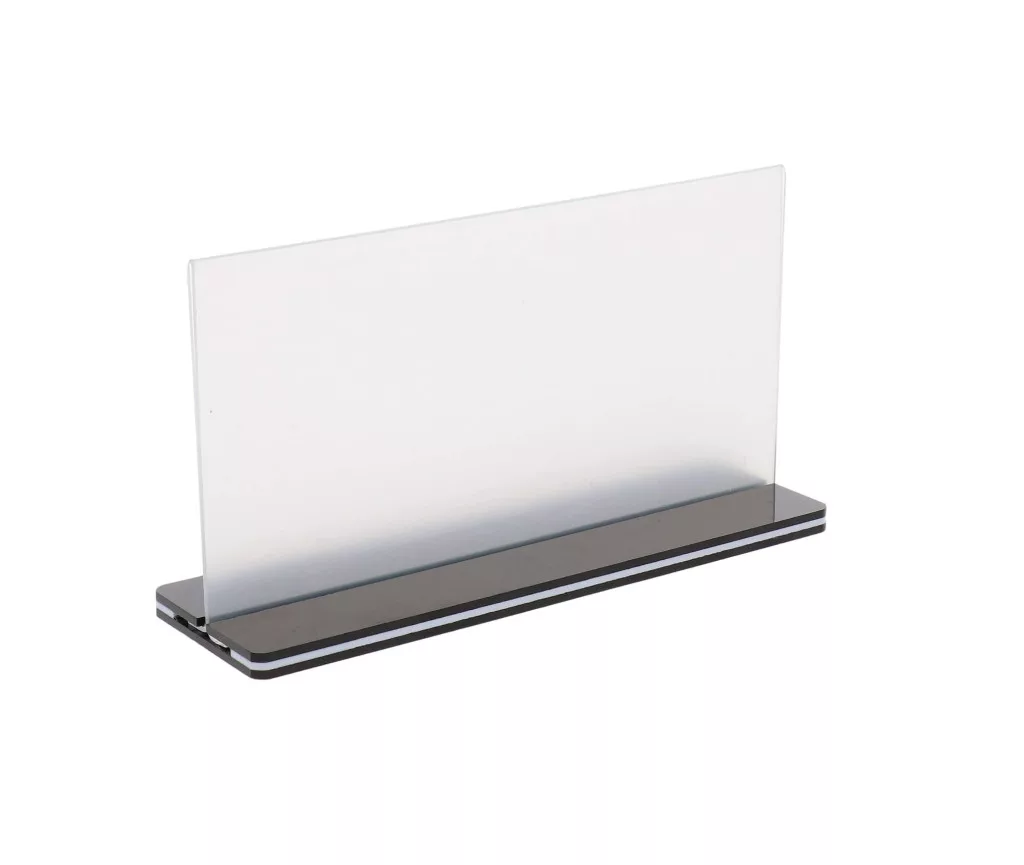 Plexi tábla fekete talppal, 20×10 CM, fekvő