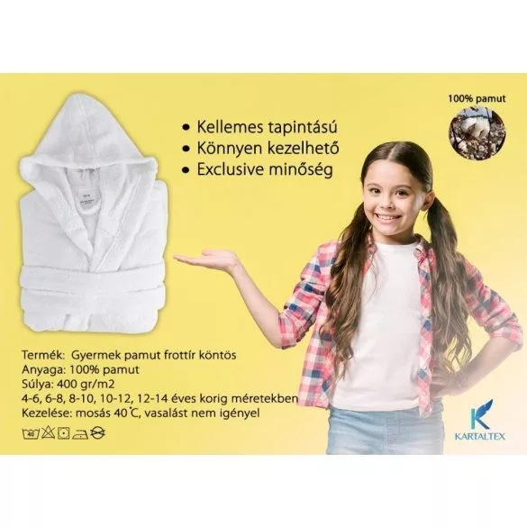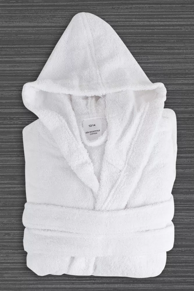 Weißer Frottee-Bademantel für Kinder, Größe 8–10