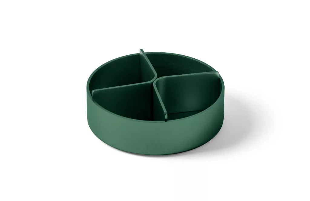 2) Frage: In welchen Farben ist das Tray erhältlich? Antwort: Das Tray ist aktuell in Grün erhältlich und bringt Frische in den Arbeitsbereich.