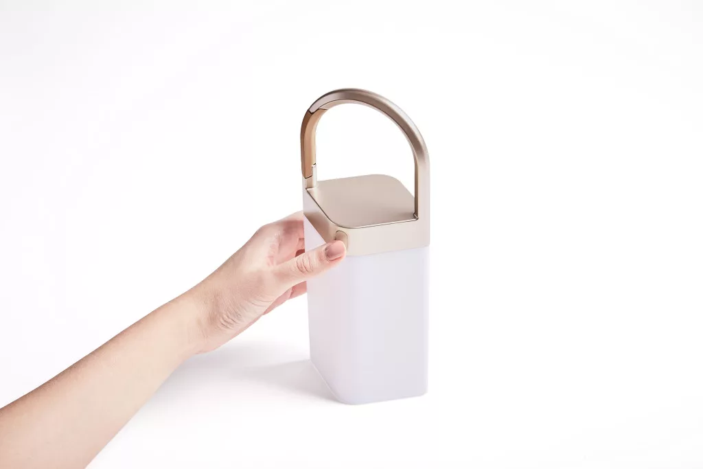 Da die Horizon Lampe ultraleicht ist und über einen Tragegriff verfügt, lässt sie sich bequem transportieren. Der Griff dient auch als Haken, sodass Sie sie bequem überall aufhängen können. Mit dem Touch-Button an der Vorderseite können Sie die LED-Farbe auswählen und die Helligkeit regeln.