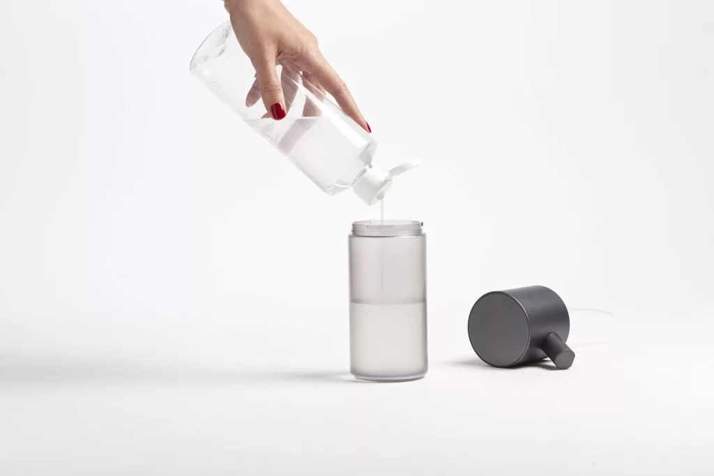 Er besticht durch seine moderne Form und sein ergonomisches Design und ist für Desinfektionsgel und Flüssigseife geeignet. Wir haben ihn so gestaltet, dass er sich perfekt in seine Umgebung einfügt.