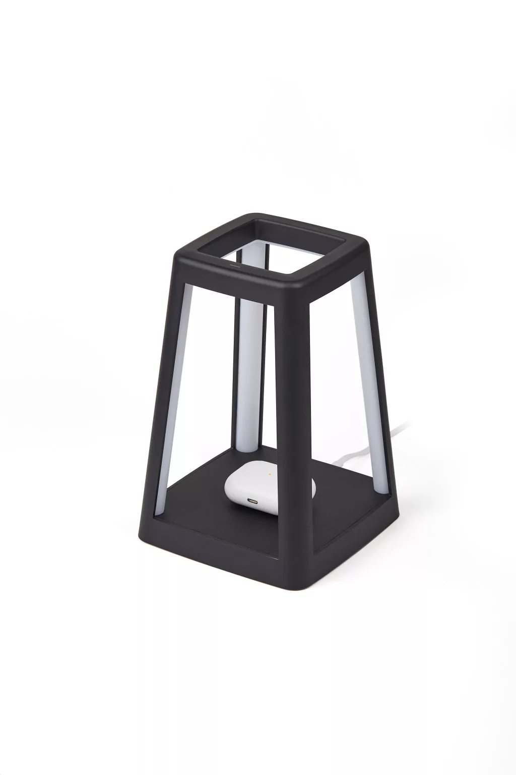 Die Laterne ist eine tragbare 2-in-1-Lampe, die farbenfrohes Licht und kabelloses Laden kombiniert. Die mit dem renommierten IF Design Award und dem Red Dot Design Award ausgezeichnete Laterne besticht durch ihr ästhetisches Design. Sie bietet eine komplett offene Struktur mit integrierten LEDs an den Beinen und einem kabellosen 15-W-Ladegerät an der Unterseite.