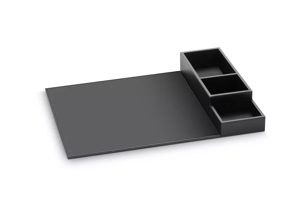 A tálca műbőrből készült, ami tartós és könnyen tisztán tartható.