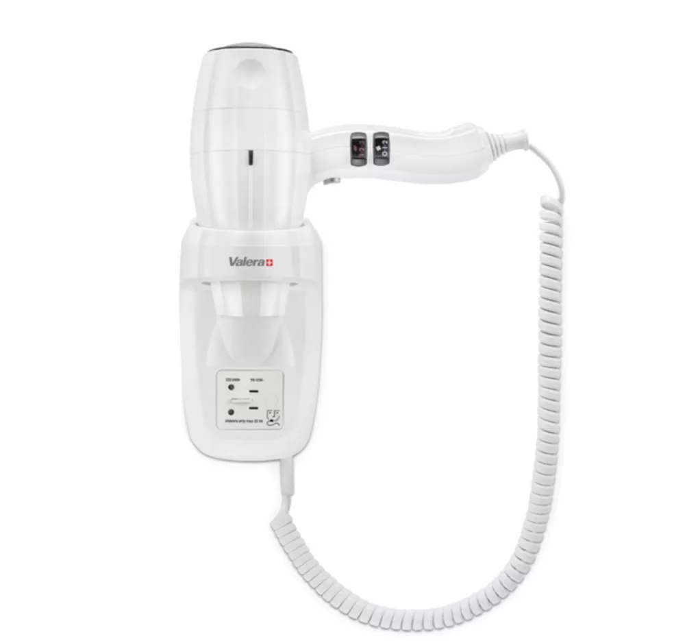 Valera Silent Jet Protect 1200 Shaver Weiß - 1200 W - Wandmontierter professioneller Haartrockner mit Rasiersteckdose