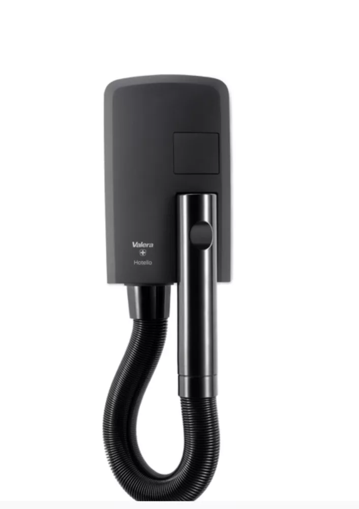 Der Haartrockner 832.01/T EU HOTELLO BLACK MATT ist mit seinen Maßen von 147 x 238 mm extrem kompakt und somit ideal für Hotels und kleinere Badezimmer, in denen Platz Mangelware ist. Dank des neu gestalteten Belüftungsmoduls sorgt er für einen kraftvollen Luftstrom und damit für schnelles und effizientes Trocknen. Der robuste, bürstenlose BLDC-Motor „Heavy Duty“ ENDURO garantiert eine lange Lebensdauer bei gleichzeitig leisem Betrieb. Die automatische Einschaltfunktion ermöglicht es dem Haartrockner, sofort nach dem Abnehmen des Griffs aus der Halterung zu arbeiten und bietet so maximalen Komfort. Der 8-Minuten-Sicherheitstimer verhindert Überhitzung und sorgt so für die Sicherheit des Benutzers. Der drehbare Griff mit „Cool-Touch“-Oberfläche ermöglicht eine einfache Handhabung, während der ausziehbare Schlauch (bis zu 1,20 m) zusätzliche Flexibilität bietet. Die Wandmontage ist denkbar einfach und erfolgt ohne Öffnen des Gehäuses. Befestigungsschrauben und Dübel sind im Lieferumfang enthalten. Der elektrische Anschluss ist auf zwei Arten möglich: per Festanschluss an das Stromnetz oder per Stecker (flexibel). Die Schutzart IP34 schützt das Gerät vor dem Eindringen von Wasser und Staub. Das Ripple Wire SECURITY Heizelement gewährleistet einen sicheren und effizienten Betrieb.