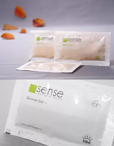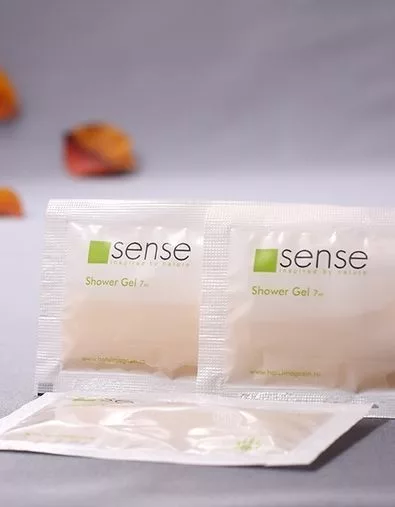 Die Sachet-Verpackung des Sense Duschgels ist das kostengünstigste Produkt unseres Unternehmens. Das dezente, angenehm nach Pfirsich duftende Sense Duschgel ist pH-neutral. Die weiß-grüne Farbharmonie verleiht Reinheit und Frische, das Duschbad belebt und erfrischt Ihre Gäste beim Duschen. Dieser Duschgel-Beutel vereint hochwertiges Duschgel mit kostengünstiger Verpackung.