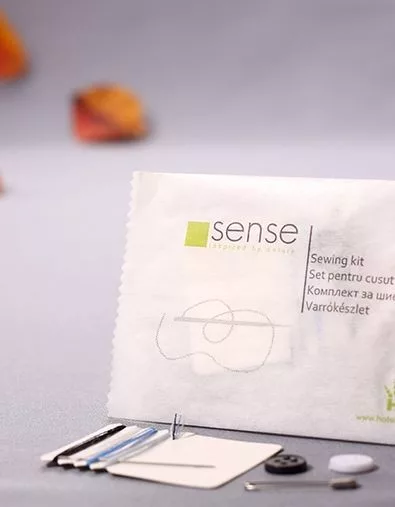 Das Hotel-Nähset ist ein nützliches und notwendiges Accessoire, das immer mehr Touristen in ihren Zimmern erwarten. Das Sense-Nähset mit 3 Farben, einer Näh- und Sicherheitsnadel sowie einem weißen und schwarzen Knopf sorgt für einen noch umfassenderen Service.