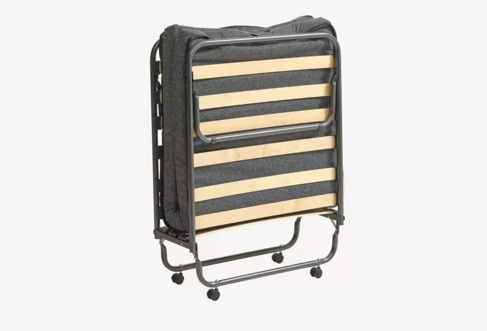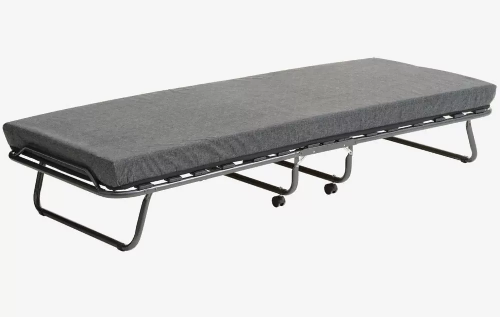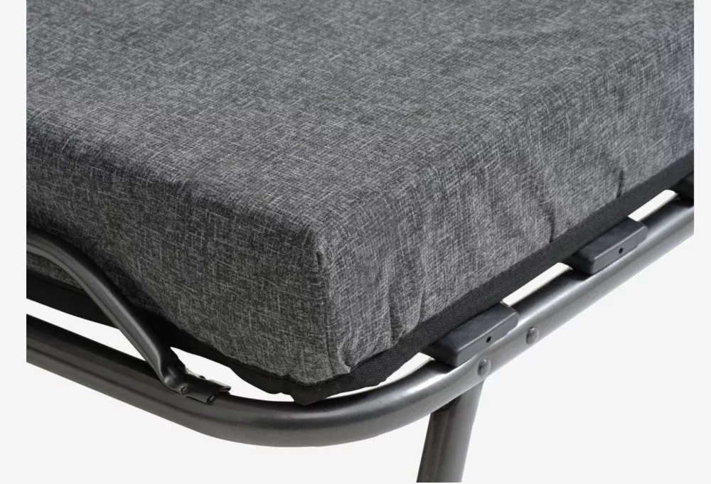 Stahl. 8 cm dicker Polyurethanschaum mit Matratze. Mit Bettrahmen. Klappbar. B80 x H190 x H35 cm