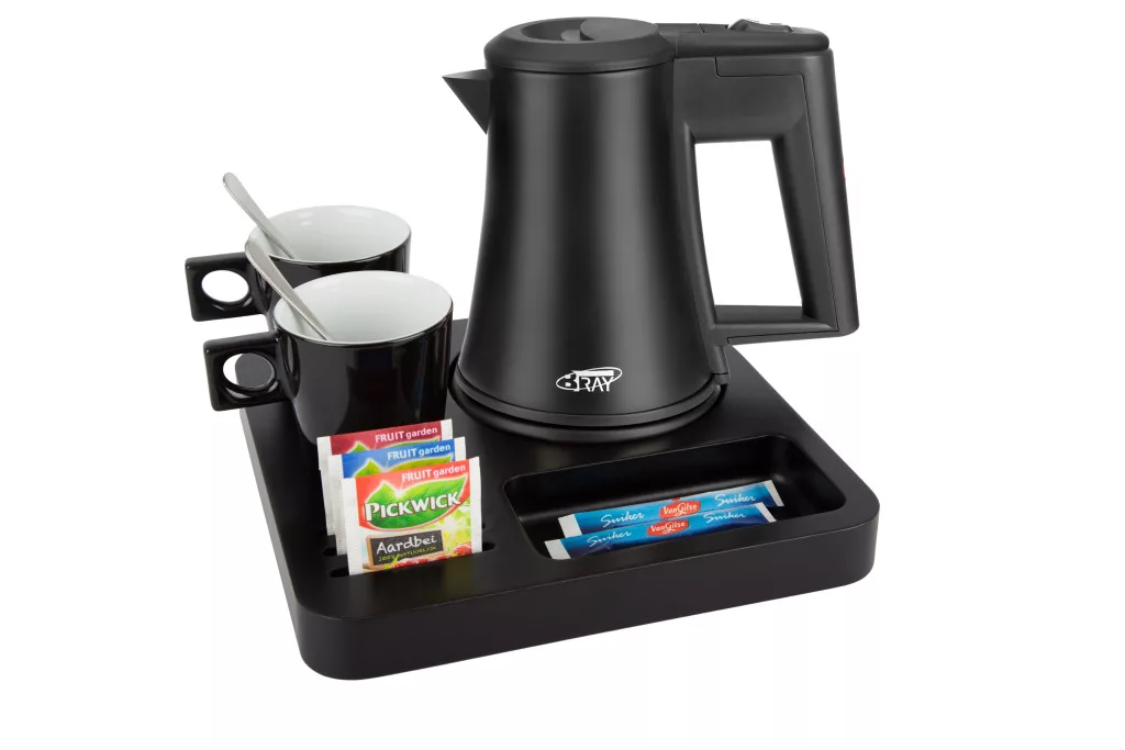 Slim tálca 0,5L-es fekete vízforralóval és 2 fekete csészével